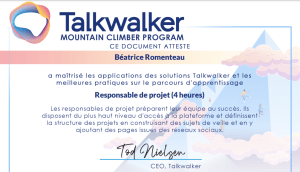 Aujourd’hui, j’ai le plaisir d’annoncer avoir reçu la certification « Projet Lead » de l’outil de veille et de Social Monitoring, Talkwalker.